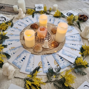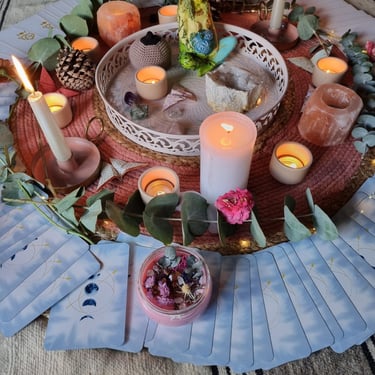 Exemples de rituels : fabrication de bougies, belly painting, création de cartes mantras, massage, décoration de bougie, rebozo...